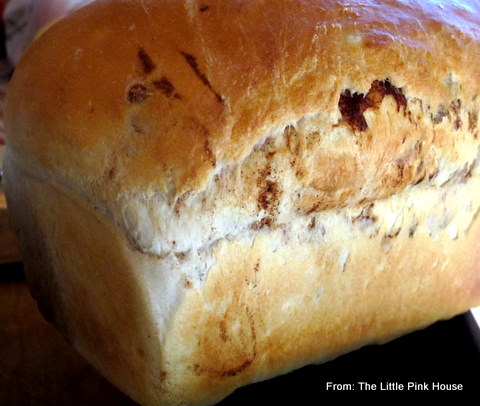 The dough can be sticky and a bit hard to work with until it’s risen once. But don’t let that scare you—it’s a fairly easy recipe, and one you’ll want to keep trying. It’s forgiving, too—if you don’t cook it long enough, the slices still slice up nicely. If you put too much flour in it, it’s tough but makes great French Toast. (Don’t ask me how I know these things…)