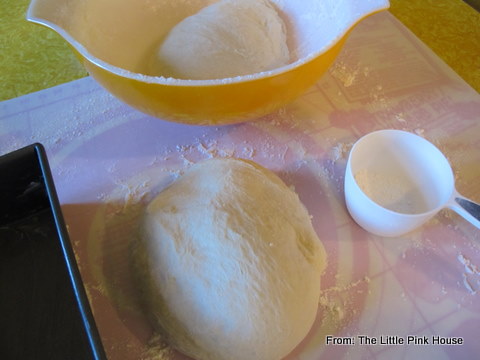 The dough will be stickier than regular bread dough. Sprinkle with flour if necessary for handling. Place in a greased bowl, cover loosely, and let rise until approximately double in bulk. (Bread dough is risen when a finger indentation stays—if you press your finger into it and it rises right back up, it’s not done rising yet.)
